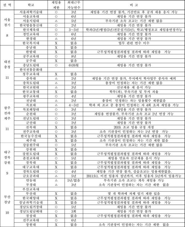 | ▲ [표] 각 국공립대학별 교육공무원 조교 재임용 현황 |