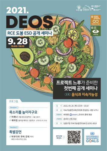 지속가능발전교육 거점도시(RCE) 서울 도봉(이동진 구청장)은 9월 28일 줌 플랫폼을 통해 '2021. 국제 ESD 유스 프로젝트 느루 세미나'를 개최한다.