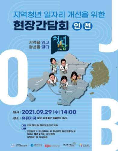 변주영 시 일자리경제본부장과 박형룡 균형위 정책조정실장, 정상민 인천시 청년정책 네트워크 위원장과 인천 청년 15명이 참석해 다양한 의견을 나눌 예정이다.