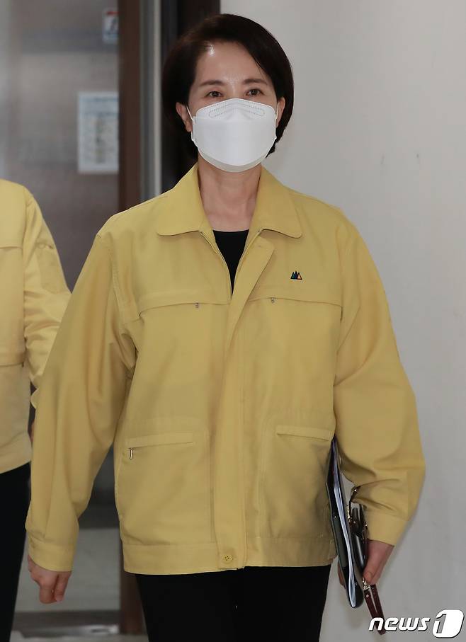 (서울=뉴스1) 구윤성 기자 = 유은혜 사회부총리 겸 교육부 장관이 23일 오전 서울 영등포구 한국교육시설안전원에서 열린 소아·청소년 백신접종 관련 회의에 참석하고 있다. 2021.9.23/뉴스1