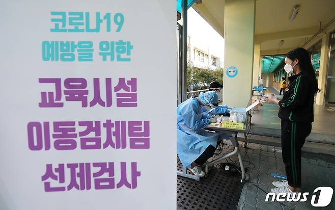이동검체팀은 검체 채취 요원 2명 등 5명이 한 팀으로 꾸려져 있으며 학교에 직접 찾아가 희망자에게 검사를 실시한다. 2021.9.23/뉴스1