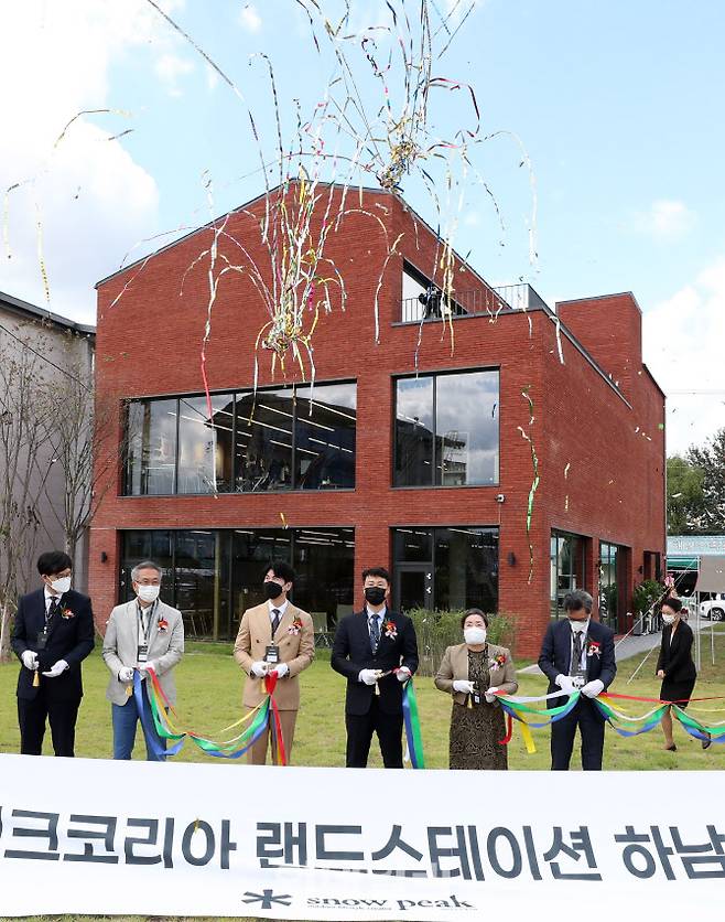 [이데일리 방인권 기자] 김남형 스노우피크 코리아 대표를 비롯한 내빈들이 23일 경기도 하남에 새로운 형태의 복합 체험공간 '랜드 스테이션 하남' 오픈식에서 테이프 커팅을 하고 있다.