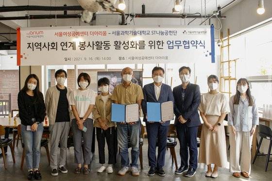 서울과학기술대학교 ST나눔공헌단(단장 류도형)이 9월 16일(목), 서울여성공예센터 더아리움(센터장 김영징)와 함께 지역사회공헌 활동 활성화를 위한 인적·물적 자원의 교류와 협력, 그리고 그에 기반한 네트워크 구축을 위한 업무 협약을 체결했다.