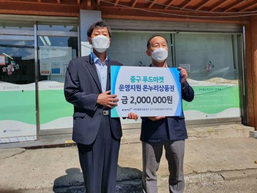 중구푸드마켓은 식품 및 생필품 등을 후원받아 지역 내 취약계층에 물품을 지원하는 시설로서 이번에 후원받은 온누리 상품권으로 푸드마켓 이용자들이 선호하는 식료품을 구매해 배분할 예정이다.