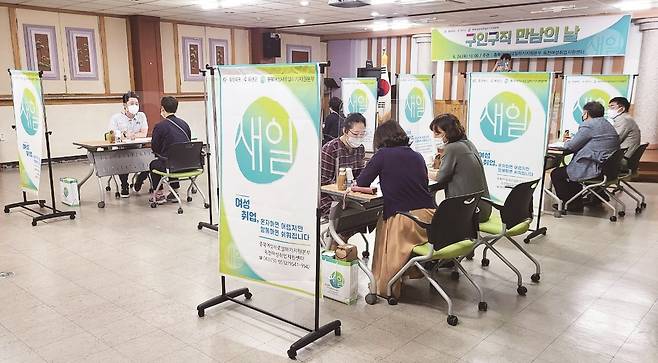 경력단절 사유 등 내밀한 상담을 통해 구직자의 현재 상황과 직업적 성향을 파악한다. 그래야 맞춤형 지원을 할 수 있다. 자존감 향상과 직장 내 의사소통 등에 대한 '취업준비교육'도 진행한다.
