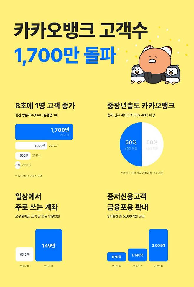 인터넷전문은행 카카오뱅크의 총 고객 수가 1700만 명을 돌파했다.