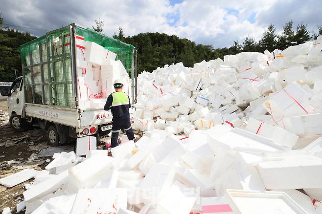 [포토]추석 연휴 끝난 뒤 쏟아지는 스티로폼