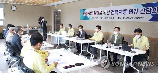 (서울=연합뉴스) 박기영 산업통상자원부 2차관이 23일 오후 전북 김제시에 위치한 김제 변전소 대회의실에서 열린 '탄소중립 실현을 위한 전력계통 현장 간담회'에 참석해 인사말을 하고 있다. 2021.9.23