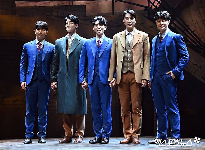 이날 프레스콜에 참석한 배우 현석준, 박영수, 윤은오, 조성윤, 최민우가 포토타임을 갖고 있다.