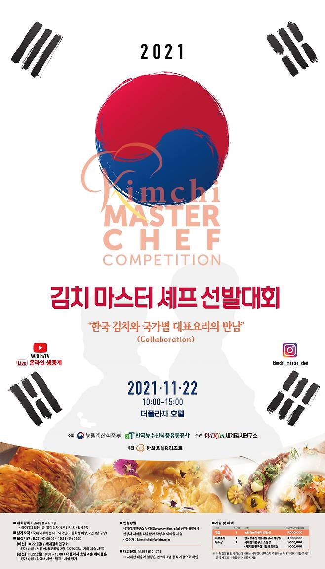 세계김치연구소는 김치의 다양한 맛과 활용성을 국내외로 홍보하기 위해 김치를 주재료로 활용한 응용요리 조리법을 개발하는 '김치 마스터 셰프 선발대회'를 개최한다.