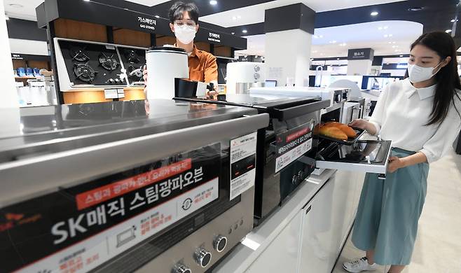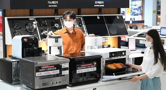 가전업계가 요리 초보자를 뜻하는 '요린이'(요리+어린이), 요리에 취미를 붙인 '집콕족' 등을 공략하기 위해 오븐·에어프라이어 등 다양한 주방가전을 선보이고 있다. 23일 서울 용산구 전자랜드에서 소비자가 주방가전 제품을 살펴보고 있다.