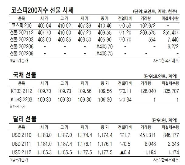 [표]코스피200지수· 국채·달러 선물 시세(9월 23일)