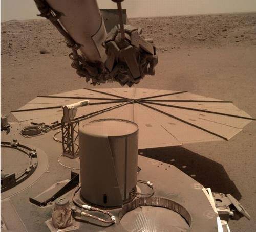 지난 2018년 10월 말 화성 적도 인근의 엘리시움 평원에 착륙한 인사이트호는 태양광 패널에 먼지가 두껍게 쌓이자 두 개의 태양광 패널 중 한쪽 끝에 로봇팔로 모래를 끼얹는 방법으로 태양광 패널 위에 쌓인 먼지를 제거하는데 성공했습니다.