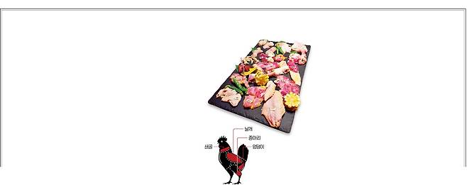 허벅지, 엉덩이, 종아리살부터 간, 심장, 꽁지까지. 토종닭 한 마리를 칼로 갈라 떼어낸 17가지 부위는 선분홍빛을 띠며 예술작품처럼 어우러져 있었다.