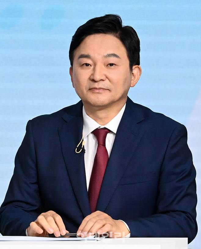 [국회사진취재단] 국민의힘 원희룡 대선 경선 예비후보가 23일 서울 강서구 ASSA빌딩 스튜디오에서 열린 제20대 대통령선거 경선후보자 2차 방송토론회에서 자리에 앉아 있다.