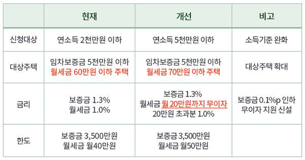 연소득 7000만원 이하 무주택자인 만 34세 이하 청년에게도 저금리 소액 전세보증금, 월세 지원 등이 확대된다. 1인당 대출가능금액을 7000만원에서 1억원으로 상향해 약 5000여명(약 4000억원)의 청년이 추가 혜택을 받을 것으로 예상된다.