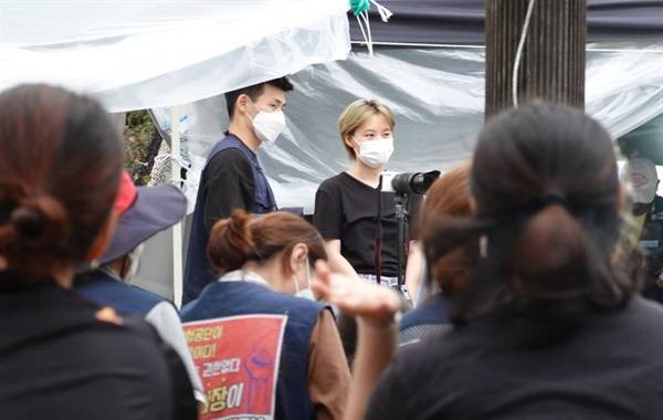 | ▲ 혜리가 보내준 사진ㅣ올해 7월, 건강보험공단 고객센터 상담사 비정규직 노동자들이 처한 현실을 알려내고 드러내기 위해 농성장에 연대방문 다녀왔어요. |