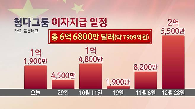 [정용택 / IBK투자증권 리서치센터장 : (중국 정부가) 개별 기업의 리스크로 접근하고 있지, 시스템 리스크로 접근하고 있는 건 아니라고 생각하고 있어요. 이후에도 이자 만기들이 쭉 도래하잖아요? 그 시점마다 간헐적인 리스크로 작용할 가능성이 높고요.]