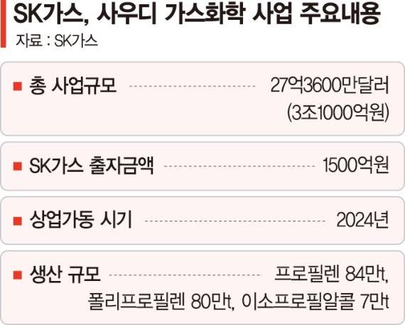 SK가스가 오는 2024년 상업가동을 목표로 추진중인 사우디 현지 프로필렌(PDH)·폴리프로필렌(PP) 사업에 500억원을 추가로 투자해 이소프로필알콜(IPA)까지 생산에 나선다.