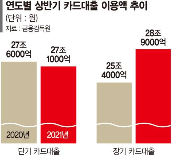 이 때문에 카드업계에서는 카드론 DSR규제 조기적용은 물론 DSR규제 적용 범위가 '현금 서비스'로까지 확대될 수 있다는 관측도 나온다. 올 상반기 현금서비스 이용액은 27조1000억원으로 지난해 상반기(27조6000억원)와 비슷한 수준이다.
