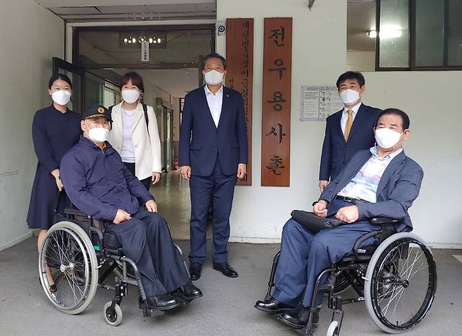 [서울=뉴시스] 고승민 기자 = 국가보훈처는 23일 황기철 처장이 서울 강동구에 위치한 ‘전우용사촌'을 방문해 현장을 점검하고 의견을 청취했다고 밝혔다. 국가보훈처에 따르면 전우용사촌은 중상이(重傷痍) 국가유공자들의 자활과 자립을 위해 3개의 복지공장을 운영하고 있으며, 최근 복지공장 운영에 어려움을 겪고 있다. (사진=국가보훈처 제공) 2021.09.23. photo@newsis.com *재판매 및 DB 금지