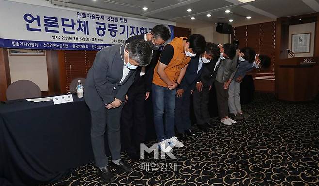한국인터넷신문협회, 방송기자연합회, 전국언론노동조합, 한국기자협회, 한국신문방송편집인협회, 한국신문협회, 한국여기자협회 등 언론 7단체가 23일 오전 10시 한국프레스센터 18층 외신기자클럽에서 '언론의 자율규제 강화를 위한 공동 기자회견'을 열었다.
