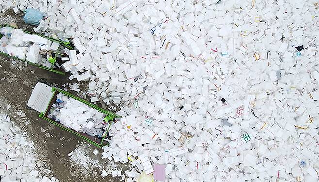 추석 연휴 뒤.. 남은 건 '스티로폼 산'