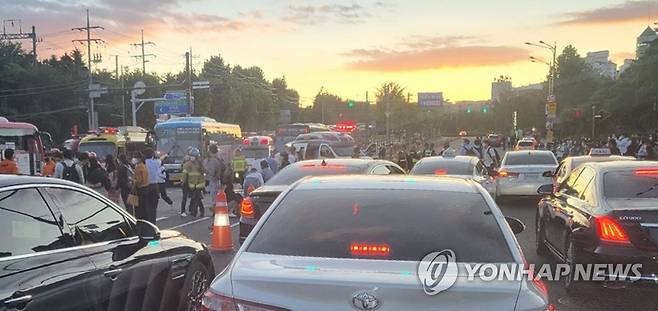 (서울=연합뉴스) 23일 오후 6시 14분께 서울 서대문구 연세대학교 인근 도로에서 운행 중이던 SUV 차량이 신호를 위반하고 횡단보도를 덮치는 사고가 발생했다. 2021.9.23 [독자 제공. 재판매 및 DB 금지]