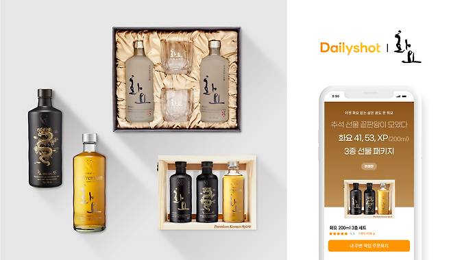 ㈜화요가 화요53, 화요X.Premium과 화요 온더락잔 세트, 화요 200ml 3종 등 선물하기 좋은 구성으로 ‘데일리샷(Dailyshot)’ 스마트오더를 진행한다.