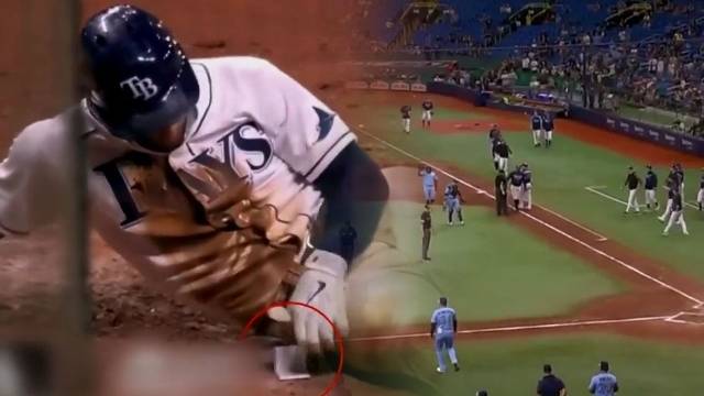 [현지 중계 : 포수 손목 밴드에 있던 카드가 빠져나왔고, 거기 있던 키어마이어가 집어서 나왔습니다.]