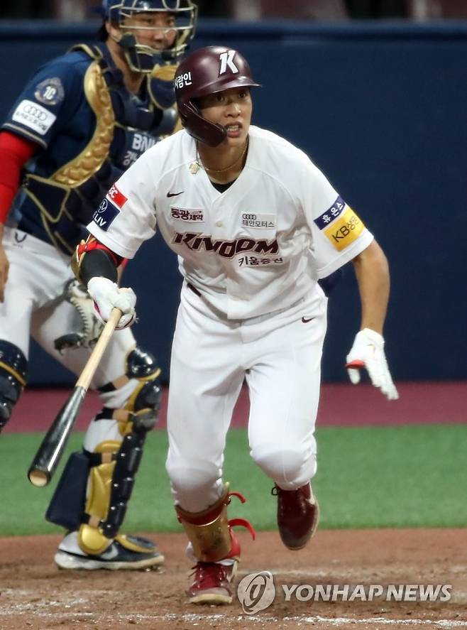 키움 송성문이 8회말 1사에서 우익수 앞 2루타를 친 뒤 타구를 바라보고 있다. 2021.9.23