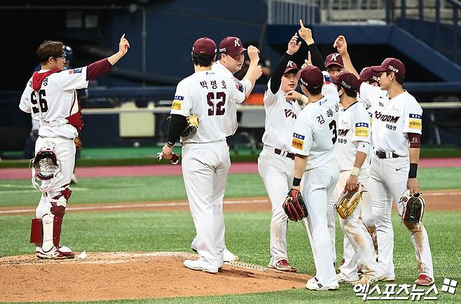 경기 종료 후 키움 선수들이 승리의 기쁨을 나누고 있다.