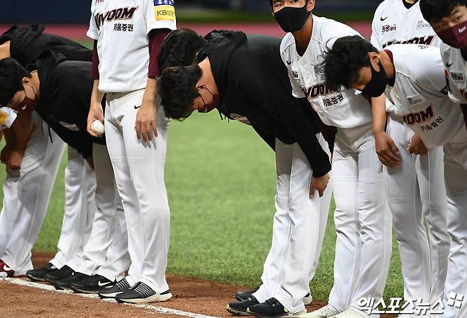 '논란 속 복귀' 안우진, 승리 후 인사[포토]