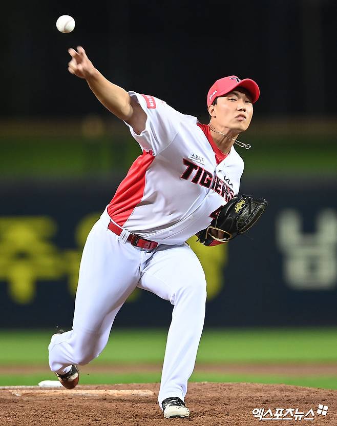 (엑스포츠뉴스 광주, 김한준 기자) 23일 오후 광주-기아 챔피언스필드에서 열린 '2021 신한은행 SOL KBO리그' 두산 베어스와 KIA 타이거즈의 경기, 9회초 KIA 박건우가 공을 힘차게 던지고 있다.
