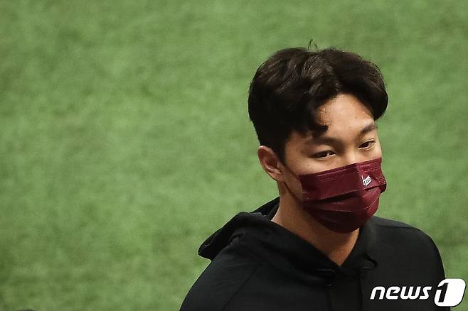 (서울=뉴스1) 유승관 기자 = 23일 서울 구로구 고척스카이돔에서 열린 프로야구 '2021 신한은행 SOL KBO리그' NC 다이노스와 키움 히어로즈의 경기에서 승리투수가 된 키움 안우진이 경기 종료 후 퇴장하고 있다. 2021.9.23/뉴스1