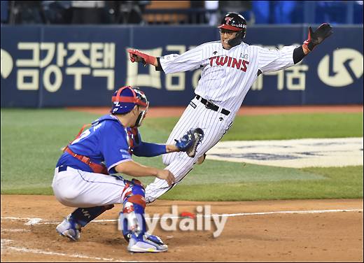 [마이데일리 = 송일섭 기자] LG 채은성이 23일 오후 서울 잠실야구장에서 진행된 '2021 프로야구 KBO리그' LG트윈스 vs 삼성라이온즈의 경기 9회말 무사 1,2루서 김민성의 안타때 홈으로 쇄도하고 있다. 최초판정은 아웃, 비디오판독 결과 원심 유지.