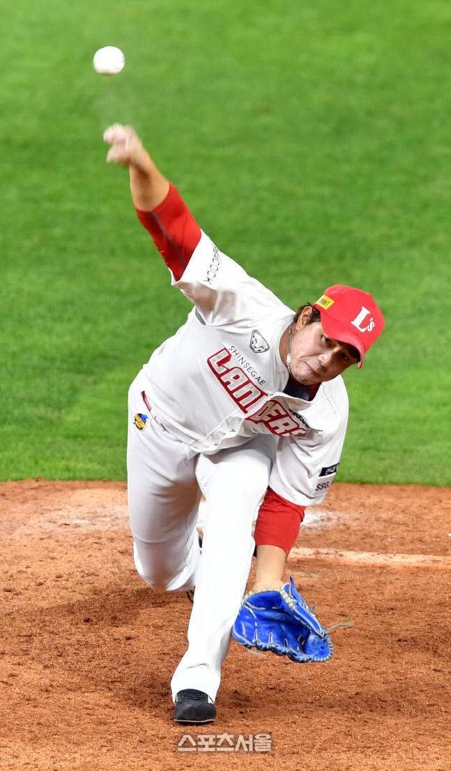 SSG 불펜 서진용이 23일 2021프로야구 SSG랜더스와 롯데자이언트의 경기 8회초 등판해 역투하고 있다. 2021.09.23.
