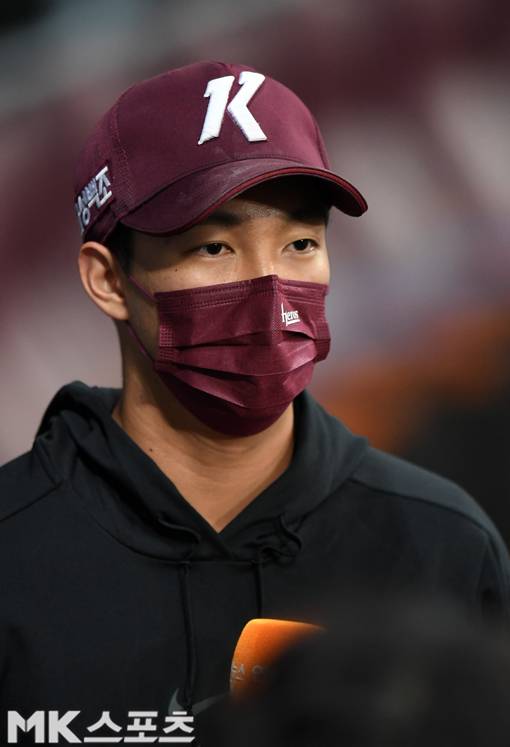 승리투수 안우진이 승리 인터뷰를 하고 있다.