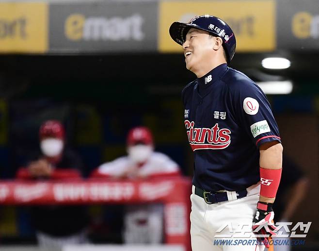 23일 인천 SSG랜더스필드에서 KBO리그 SSG와 롯데의 경기가 열렸다. 9회초 1사 1, 2루에서 헛스윙 삼진을 당한 손아섭이 아쉬운 표정을 짓고 있다. 인천=송정헌 기자 songs@sportschosun.com/2021.09.23/
