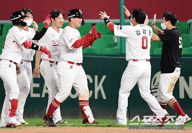 23일 인천 SSG랜더스필드에서 KBO리그 SSG와 롯데의 경기가 열렸다. 9회말 2사 2루에서 SSG 이재원이 끝내기안타를 날렸다. 동료들의 축하를 받고 있는 이재원. 인천=송정헌 기자 songs@sportschosun.com/2021.09.23/