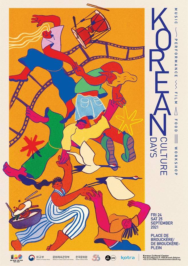 <한국문화의 날> 축제는 한벨 수교 120주년을 기념하여 브뤼셀 시청 협력을 통해 개최된다. 축제 첫날 금요일에는 ‘케이팝 월드 페스티벌; 벨기에’가 열린다. 예선 참가자 32팀 중 결선 진출 15팀이 현지 케이팝 팬들이 운집한 가운데 최고의 케이팝 댄스 실력을 겨룬다. 이어서 봉준호 감독의 ‘기생충’ 야외에서 상영되어 관람객들은 브뤼셀 하늘 아래에서 한식을 즐기며 영화를 감상할 수 있다.