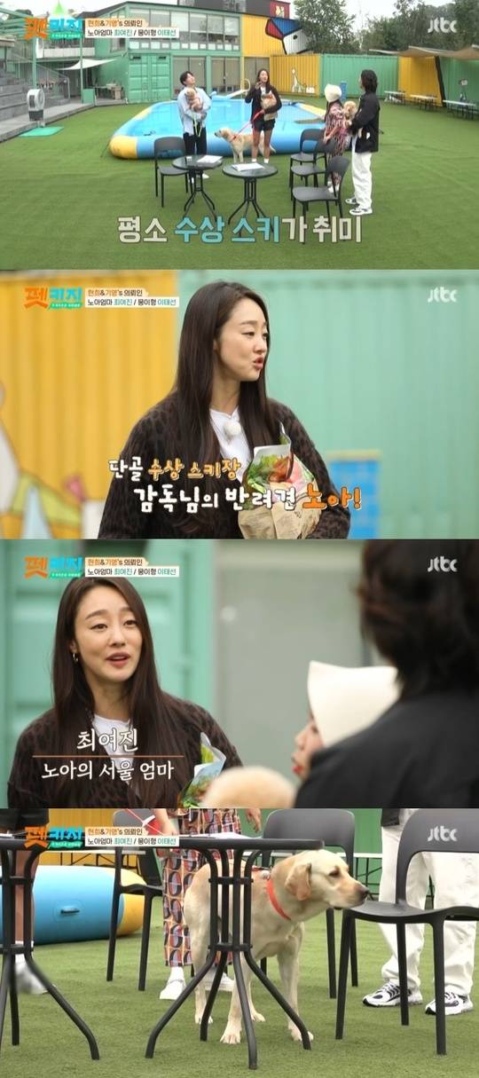 이날 최여진은 "제가 가평에서 2도 5촌 생활을 하고 있는데 수상스키를 타고 있다"며 "거기 대표님 부부, 저를 가르쳐주시는 감독님의 개 4마리 중 한 마리"라고 함께 온 반려견 노아를 소개했다.