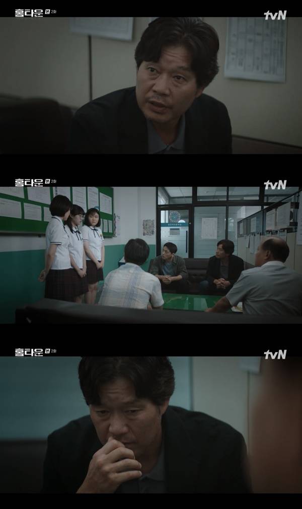23일 방송된 tvN 수목드라마 '홈타운'에서는 최형인(유재명 분)이 조재영(이레 분)과 이경진(김지안 분)을 찾기 위해 학교를 방문하는 모습이 그려졌다.