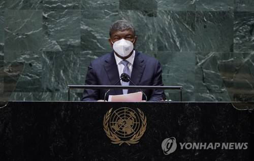 epa09483339 Joao Manuel Goncalves Lourenco, President of the Republic of Angola, addresses the 76th Session of the General Assembly at UN Headquarters in New York City, New York, USA, 23 September 2021. EPA/TIMOTHY A. CLARY / POOL