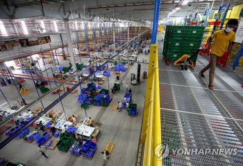 epa09483614 A general view showing the Flipkart Anjaneya fulfillment warehouse at Ramasandra village in Kolar district, outskirts of Bangalore, India, 23 September 2021. E-commerce firm Flipkart aims to strengthen its supply chain infrastructure by adding over 800,000 square feet of space in five major cities such as Delhi, Mumbai, Chennai, Hyderabad and Bangalore. EPA/JAGADEESH NV