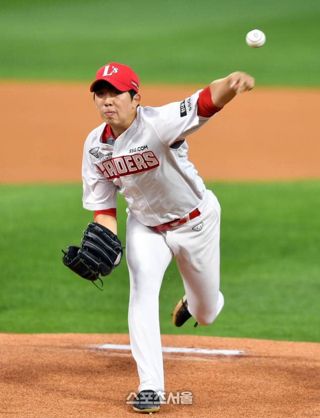 SSG 우완 선발 오원석이 232일 2021프로야구 SSG랜더스와 롯데자이언트의 경기에서 역투를 펼치고 있다.2021.09.23.