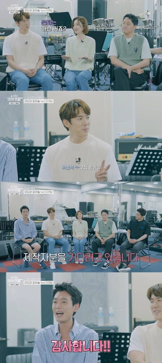 이에 유연석은 "2집 활동을 마무리하는 것"이라며 "3집 앨범 준비를 하고 중간에 뭐 개인적으로 싱글 앨범 준비하셔도 된다"며 너스레를 떨었다. 정경호가 "솔로 나오는 타이밍"이라고 욕심을 내자 유연석은 "유닛 결성하냐. 스케줄 되는 사람들끼리 모여서 해도 되는 거냐"고 덧붙였다.