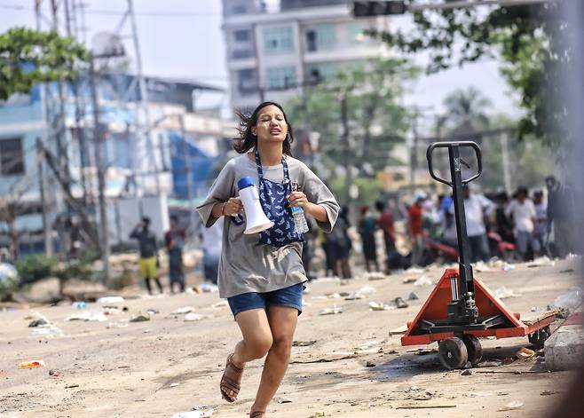 | ▲ 미얀마 군부 쿠데타에 저항하고 있는 미얀마 양곤의 흘라잉타야(Hlaingthaya) 지역의 3월 14일 모습. 이날 군부는 해당 지역에 계엄령을 선포했다. |