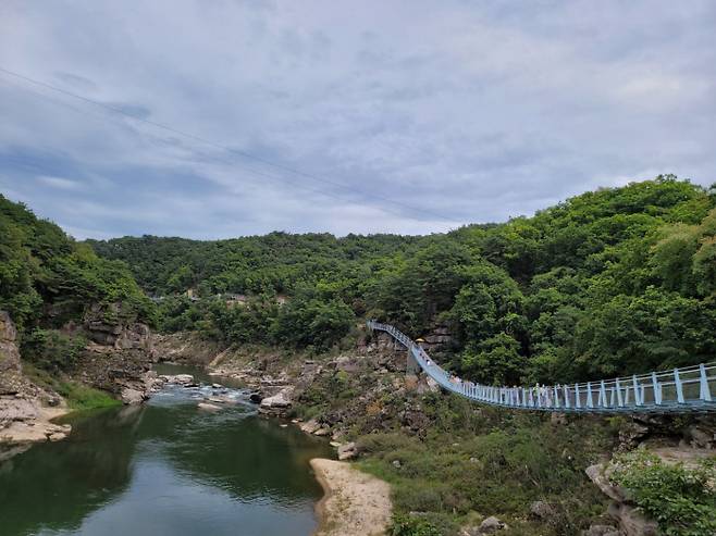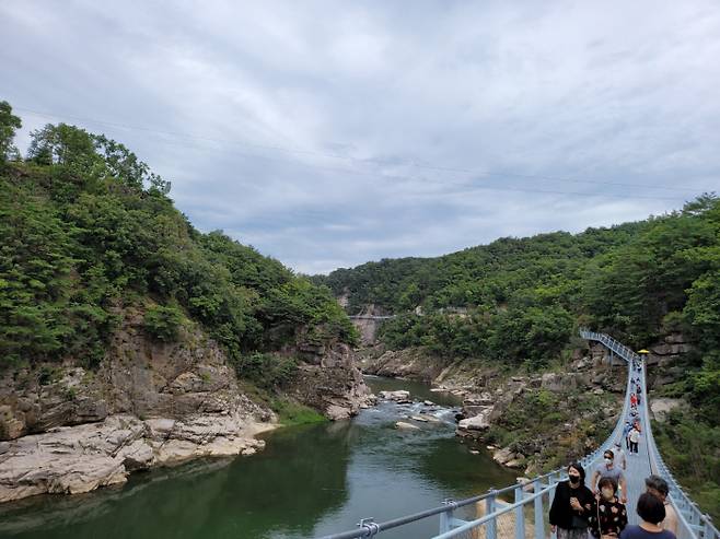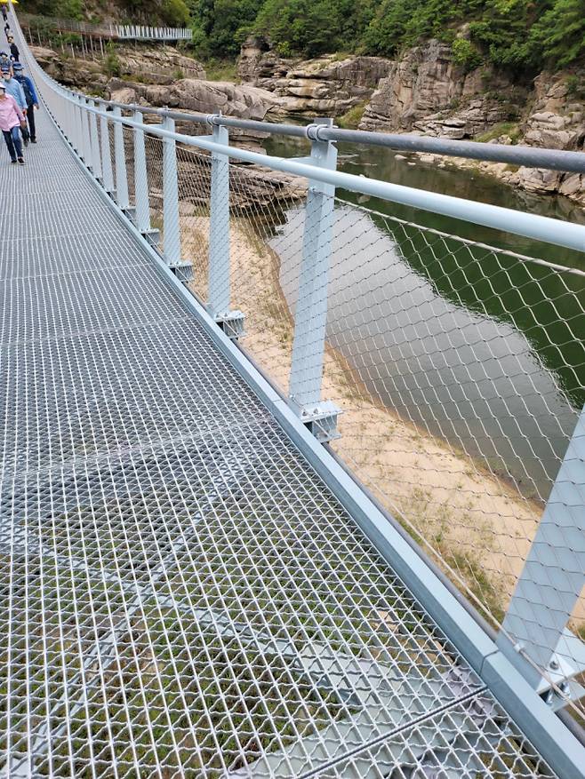 ‘한탄강주상절리길’은 순담계곡에 새롭게 설치된 ‘잔도’다. 총 1㎞로 임시 개통이라 왕복 2㎞의 부담없는 산책 길이 됐다. 하지만 고소공포증이 있는 사람들에게 어느 정도 용기가 필요하다. 대개의 디딤판이 밑이 훤히 보여, 고소공포증이 심한 이들엔 자책길이 될 수 있으니…. 하지만 걷다보면 주변 경치에 취해고소공포증을 잊을 수 있는 ‘단기 기억상실’의 기적을 맛볼수도 있다. 정식 개통은 10월 쯤으로 알려졌다.