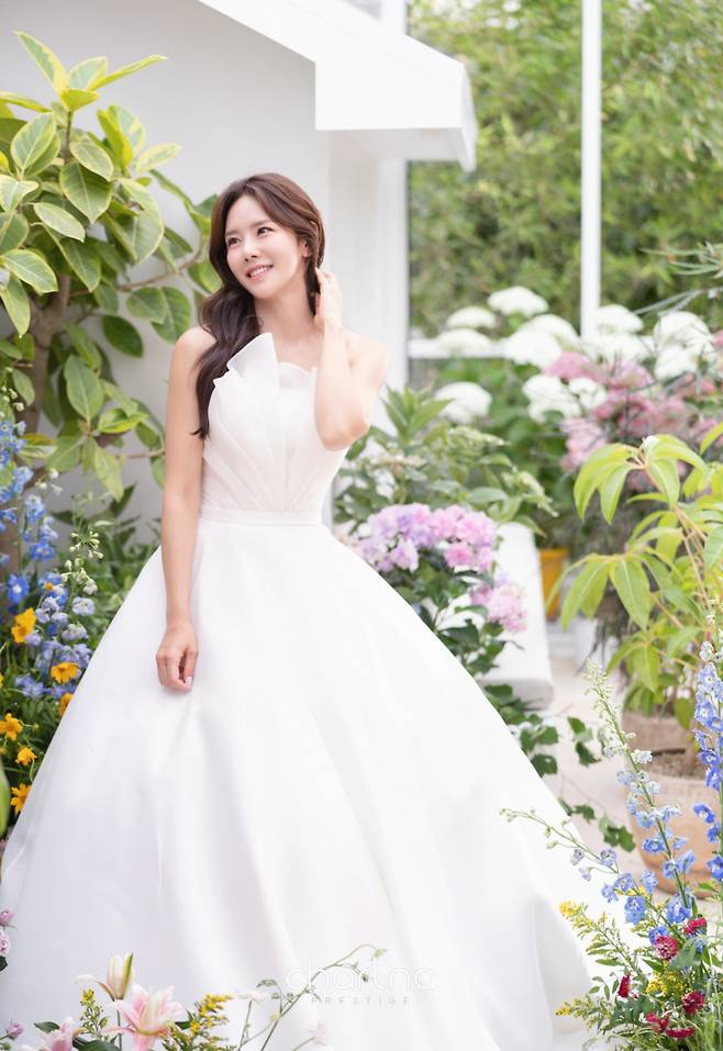 이연두는 웨딩화보 속 순백의 웨딩드레스를 입고 청순하면서도 싱그러운 자태를 뽐내 눈길을 사로잡는다.
